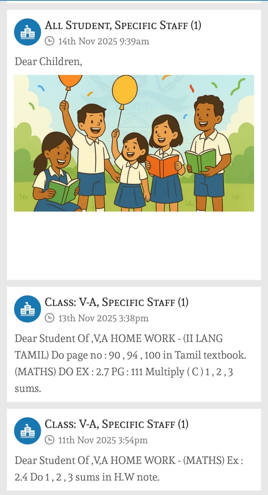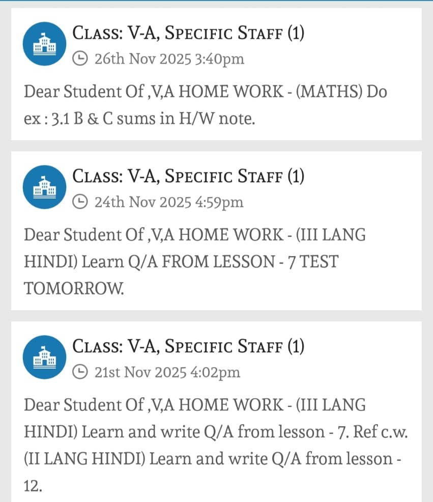 Daily homework messages are shared to help parents monitor their child’s academic progress.