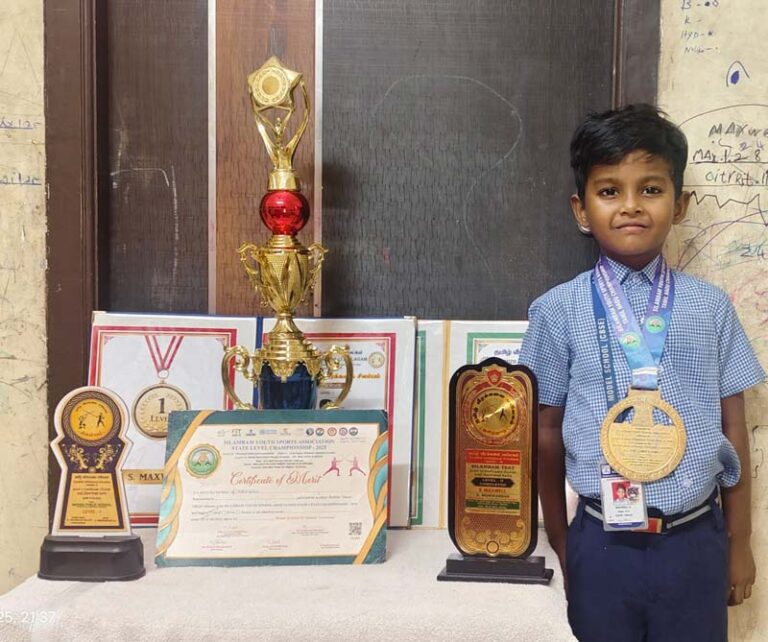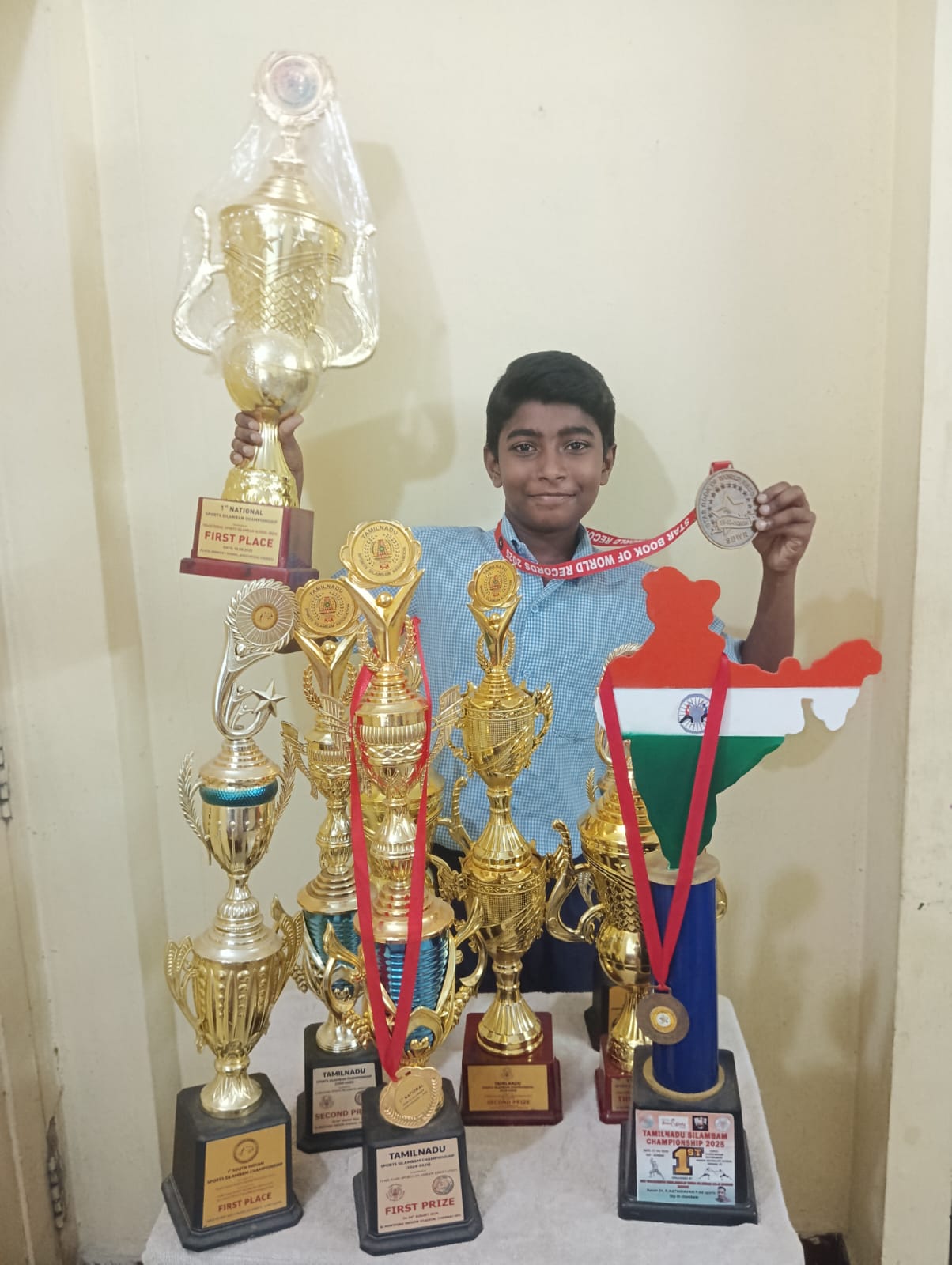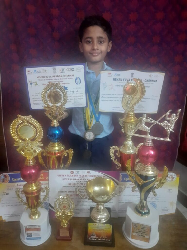 National Level Silambam Champion. Secured gold in cub category